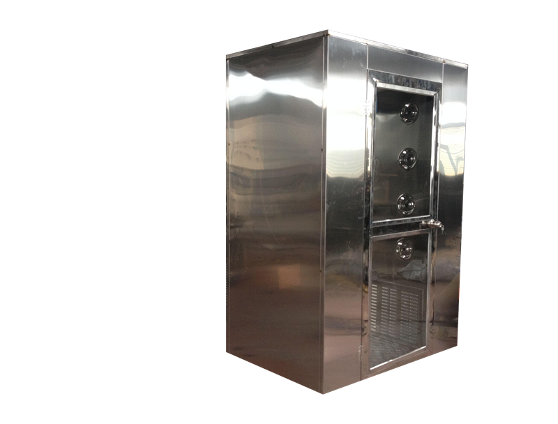 風淋室是操作人員進入潔凈室時使用的人身凈化裝置。它利用高速潔凈氣流吹淋除掉進入室內人員身上的污物。其風淋室噴嘴可調節,以便有效除去人身上的灰塵,并阻止外界污染進入潔凈區域。它也可應用于大件貨物的吹淋。