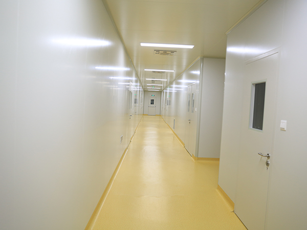 凈化車(chē)間采用夾心彩鋼板結(jié)構(gòu)。安裝時(shí),墻面采用企口型,而吊頂采用普通型彩鋼板,使用新型“單、雙”密封的夾心彩鋼板配套鋁型材。緊固件及管線(xiàn)在板材內(nèi)暗裝,這種方法使廠(chǎng)房?jī)?nèi)壁及吊頂看不到螺絲和鉚釘,同時(shí)使門(mén)窗密閉程度提高,并在保健品凈化車(chē)間內(nèi)使用有聯(lián)鎖和紫外燈裝置的傳遞窗(柜)。它能保持室內(nèi)正壓穩(wěn)定,防止污染,達(dá)到GMP要求。